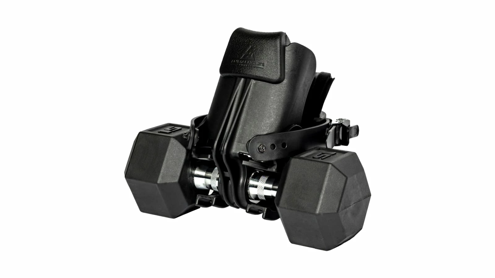 Developed by Animalhouse Fitness, MonkeyFeet is a patented, ratchet-based shoe attachment uniquely designed to hold a standard dumbbell, up to 160 LBS in weight. This innovation allows athletes to lift DBs with their feet just as they would with their hands, opening up dozens of leg training movements (leg extensions, high knees, hamstring curls, raises, donkey kicks, etc.) without the need of expensive machines.