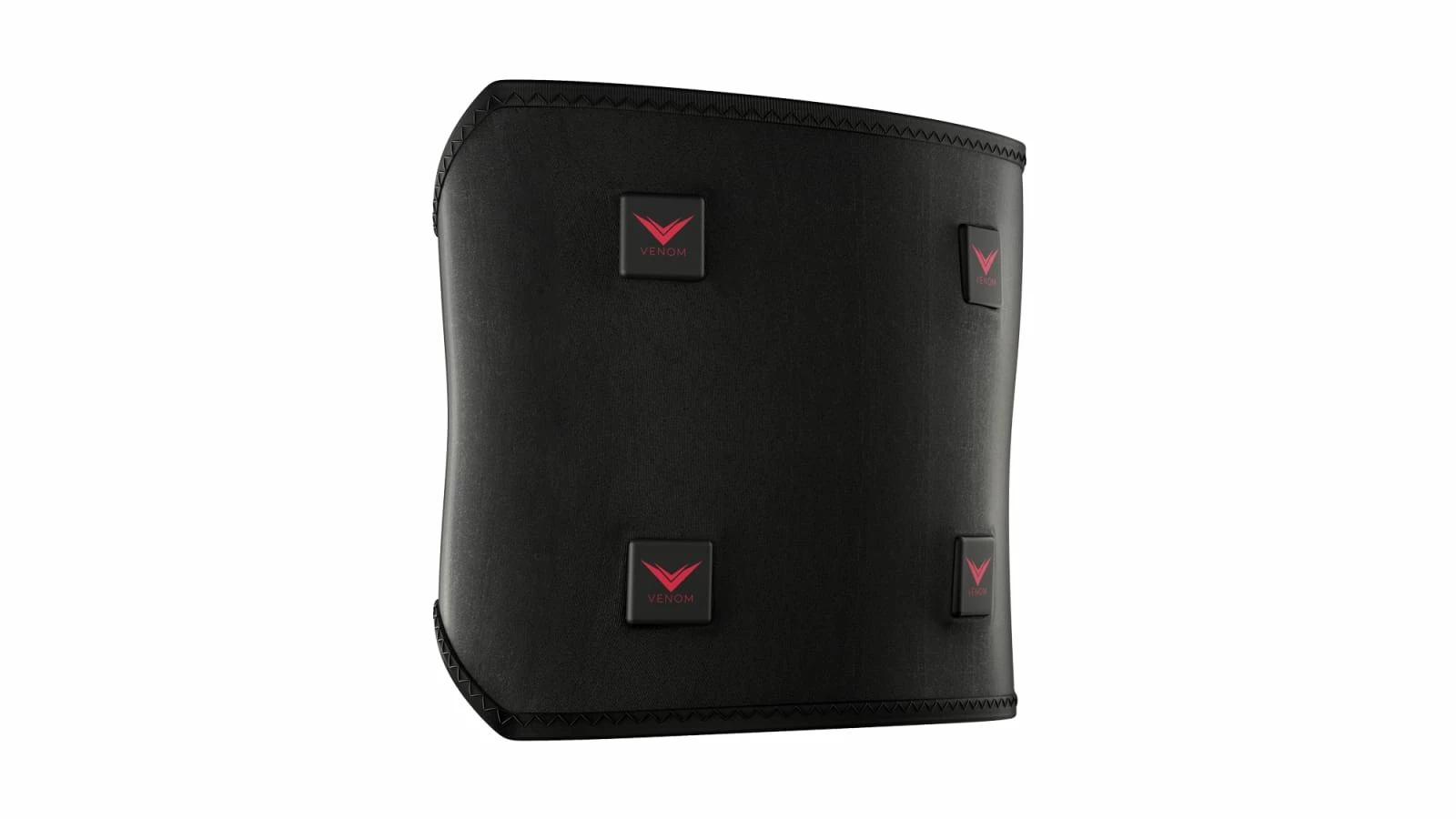 The heat itself is distributed via embedded nanotechnology, with four evenly spaced vibration pods providing a comfortable deep massage. For regular use, simply wrap the Venom around the lower back area (One Size Fits All), attaching the strap snugly so that the vibration pods are centered on the back. Then, select your desired settings, press START, and get a precision pre or post-workout massage while on the go.