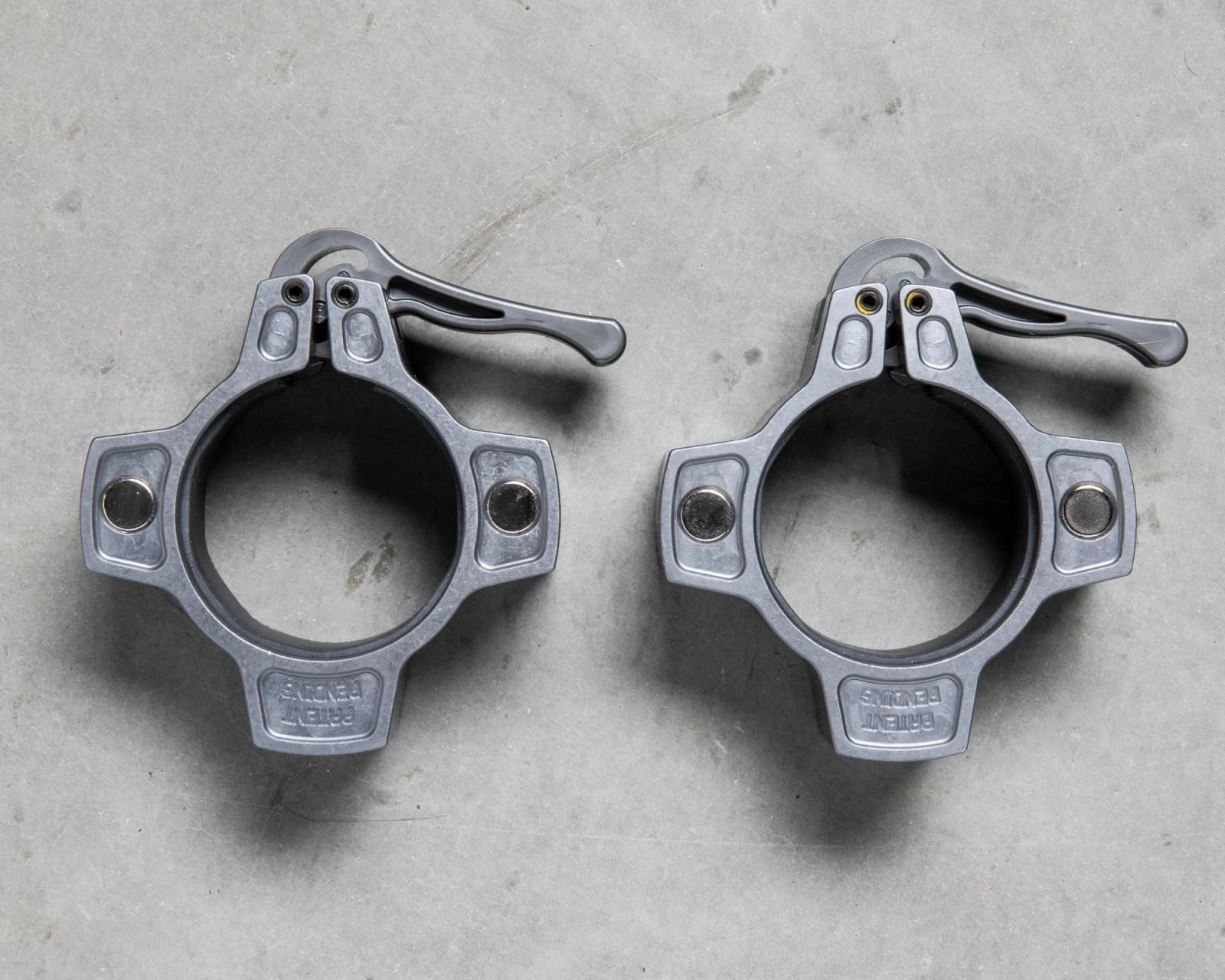Like the standard Rogue OSO Collars, these magnetic collars are machined in the Rogue factory from aircraft-grade aluminum with a gun metal gray anodized finish and industrial, gear-style design. Compatible with any standard 50mm Olympic barbell sleeve, each Rogue OSO MAG Collar measures 1.5” in width and includes a lock/unlock lever for a secure hold and a rubberized interior lining to protect your bar.