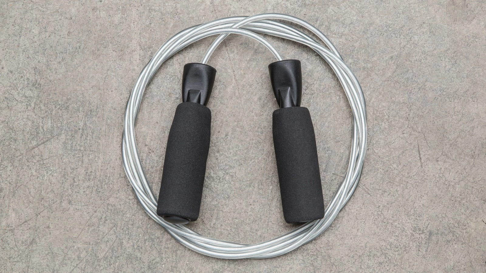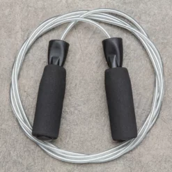 These workhorse bearing speed ropes feature stainless steel cables wrapped in plastic (5/16” diameter) for a quick spin and low drag. The easy-grip foam handles measure 5.5” in length and 1-5/16” in diameter, and include a single ball bearing at the end for reduced stress on the shoulders, wrists, and elbow joints.