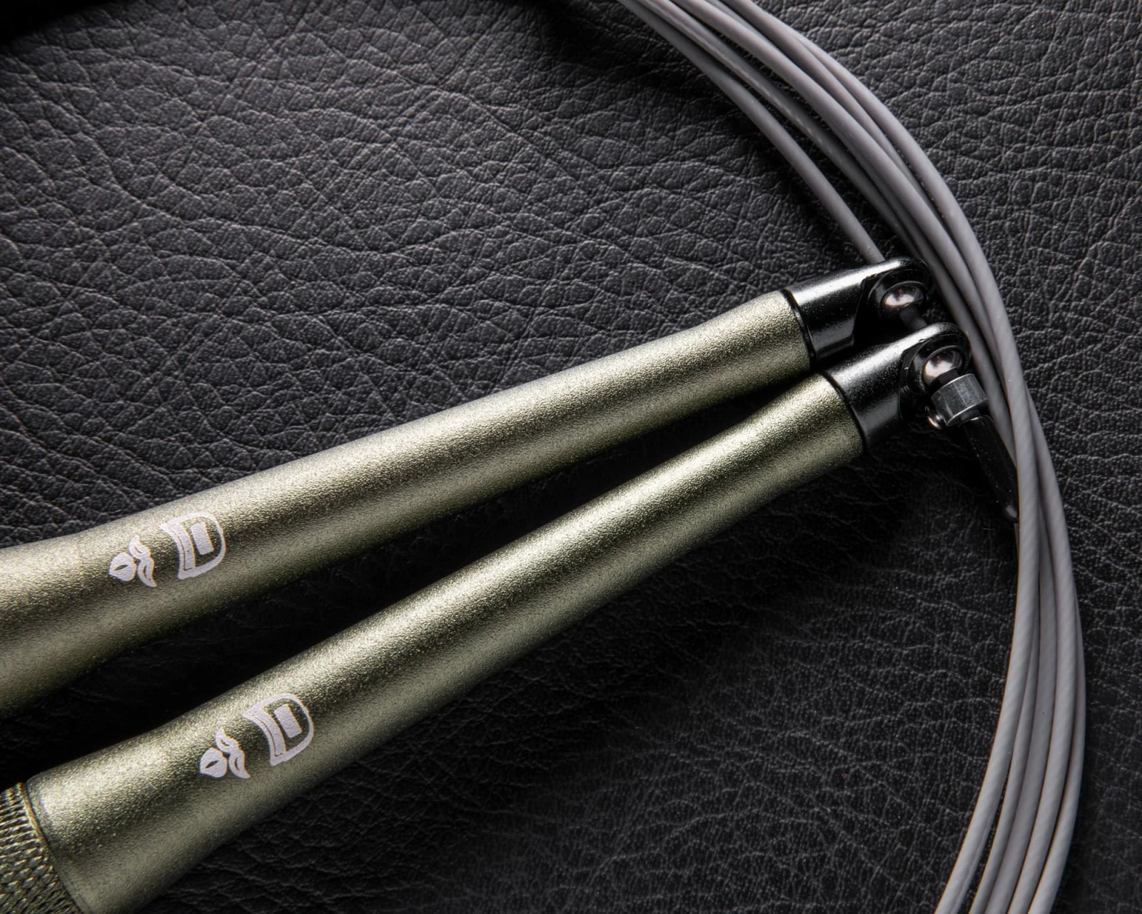 A variation on our standard SR-2 3.0, the Bridges Ballistic Speed Rope is Made in the USA and features a 3/32″ adjustable speed cable (light grey coating) and a high-performance, ball-bearing swivel design, allowing the rope to move seamlessly in any direction. The 6.75” tapered handles are constructed from aircraft grade aluminum and come with a unique Olive Drab anodized finish + exclusive etchings of the Josh Bridges “Stache” logo in white. A sandblast textured spindle offers a reliable, knurled grip, and the endcaps come with laser-cut Rogue logos.