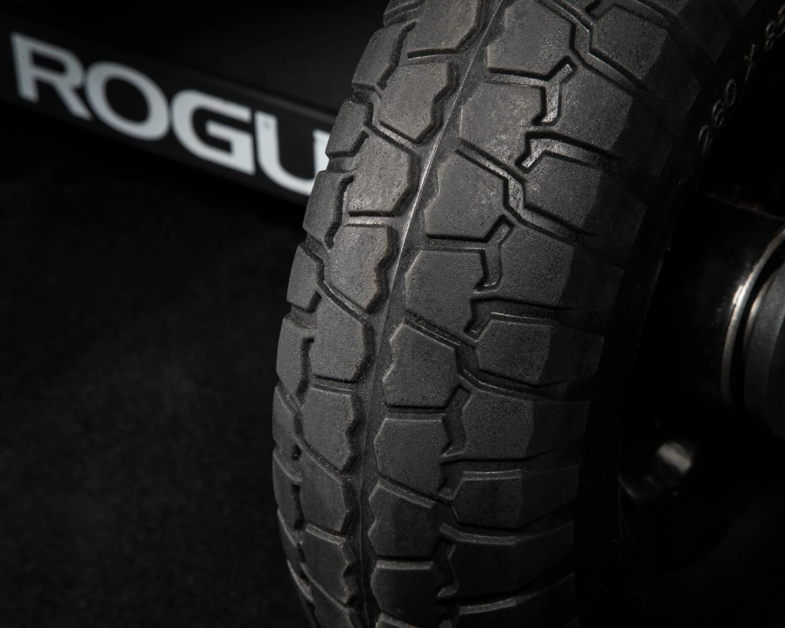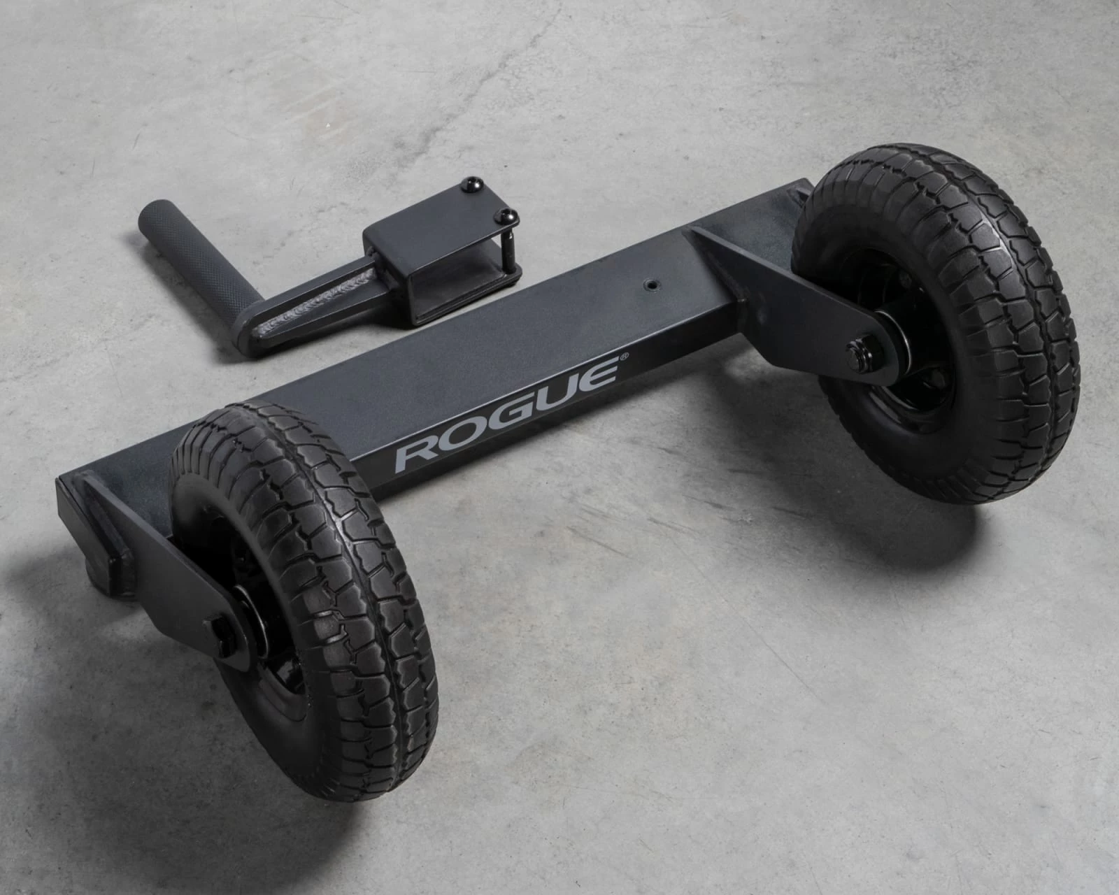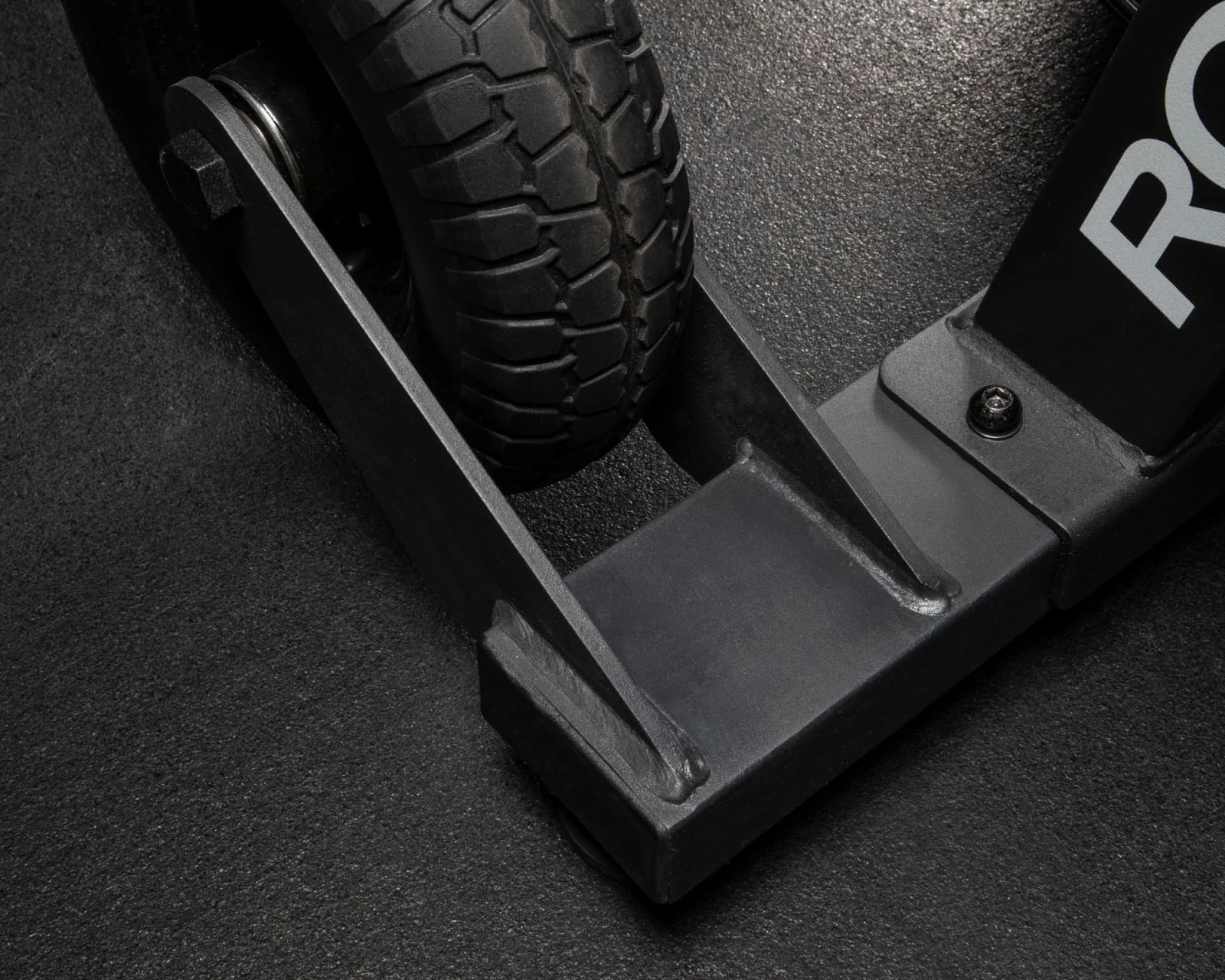 An exclusive attachment for the Rogue Echo Bike, the Turf Tire and Handle Kit is designed to replace the standard front foot of the unit, adding a new level of maneuverability to this overbuilt 127 LB “stationary” bike. The kit’s two large polyurethane tires and knurled, easy-grip handle allow gym owners to easily reposition the Echo Bike and/or quickly roll it across a gym floor. The bulk and strength of the wheels also means you can move the bike outside over grass/dirt/pavement to set up an outdoor training space virtually anywhere.