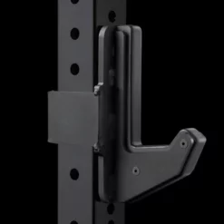 - Our premier model; the side plates fit into a recessed, machined plastic core (2″ wide) to stop metal-to-metal contact. The hardware (that connects the plastic to the side plates) is also recessed, preventing the bar or a user’s hand from scraping against them. Welds are inside the side plates for a clean edge, and UHMW plastic is featured on the clasp and back plate to prevent damage to the uprights.