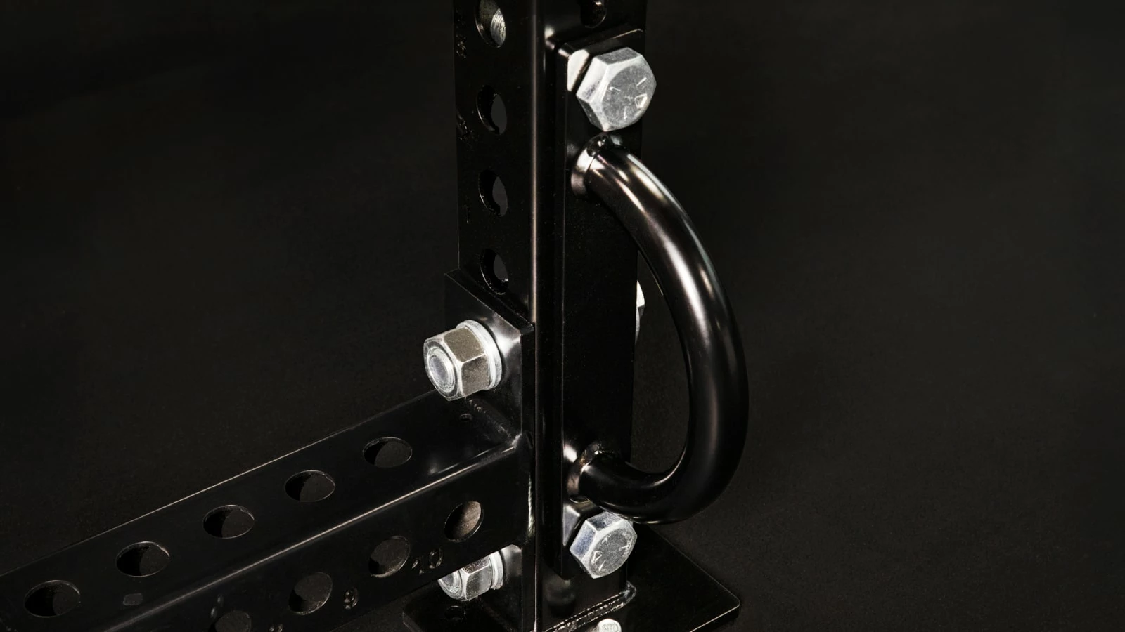 When installing your Rope Attachment Anchor, you can choose any side of an upright at any custom height (as long as the holes are spaced 12″ on center to join up with the mounting plate). All required 1″ mounting hardware is included in your order. Once installed, the outside edge of the anchor will extend 5″ (Depth) from the face of the upright.