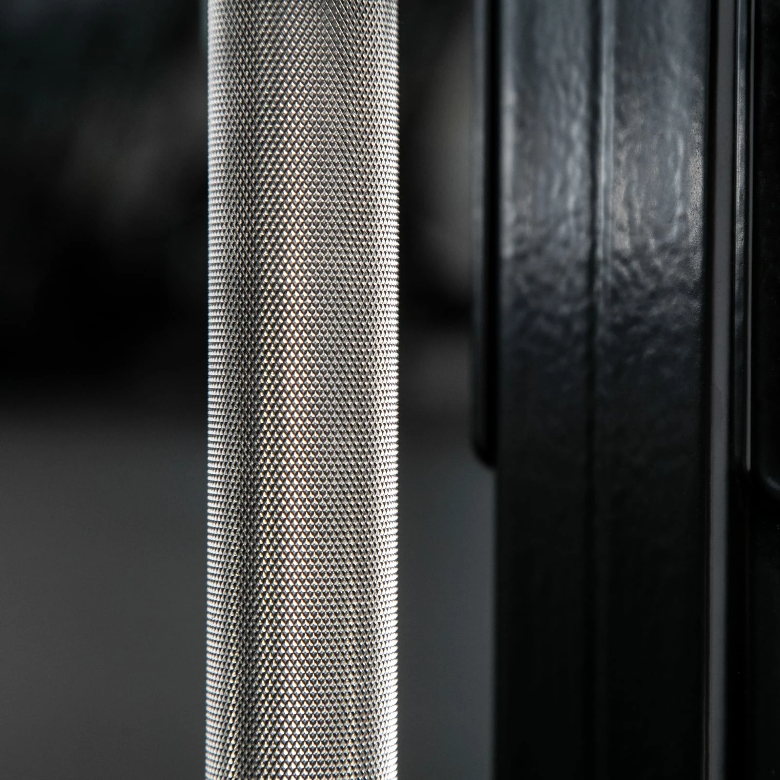 As with the original model, gym owners can customize the Monster Utility Bench 2.0 during the ordering process by selecting a preferred bench height (Standard vs. Shorty) and style of bench pad (Standard vs. Premium vs. Competition Fat Pad™ vs. Thompson Fat Pad™). The Shorty Bench option allows athletes to use a Fat Pad™ while still keeping the unit at a more traditional flat bench height. We’re also offering an alternative to the standard MG Black front handle, as customers can add a Knurled Stainless Steel handle to their order a la carte in a short or standard-length option. The knurling on the stainless handle is the same pattern found on our Rogue Ohio Bar.