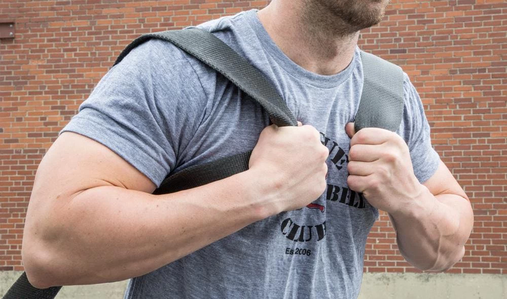 Each Fat Boy Sled is manufactured in Columbus, Ohio, and sold standard with a 16′ strap, which can be looped over the shoulders or through a belt for a wide range of sled training movements—from shoulder raise dragging and ankle dragging to walking lat pulls, chest presses, and pull-throughs. Customers also have the option of adding a heavy-duty Spud Inc sled strap to their order.
