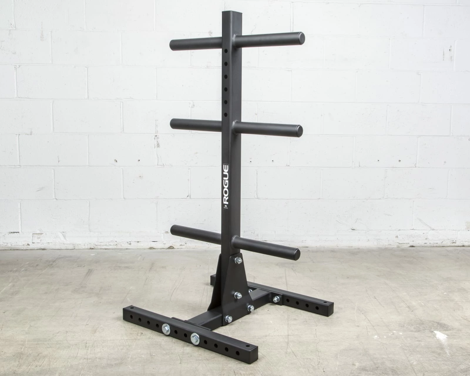 The simple, old-school plate tree is still the gold standard when it comes to efficient bumper storage at affiliates and garage gyms around the globe. That said, there’s always room for a little refinement. Rogue’s updated Vertical Plate Tree—built in the USA—improves on traditional models with a reinforced triangle-plate base, optional wheels for mobility, and re-positioned posts that enable full-size Oly plate storage on all three tiers. The unit’s new bolt-together design also reduces shipping costs while maximizing overall stability.