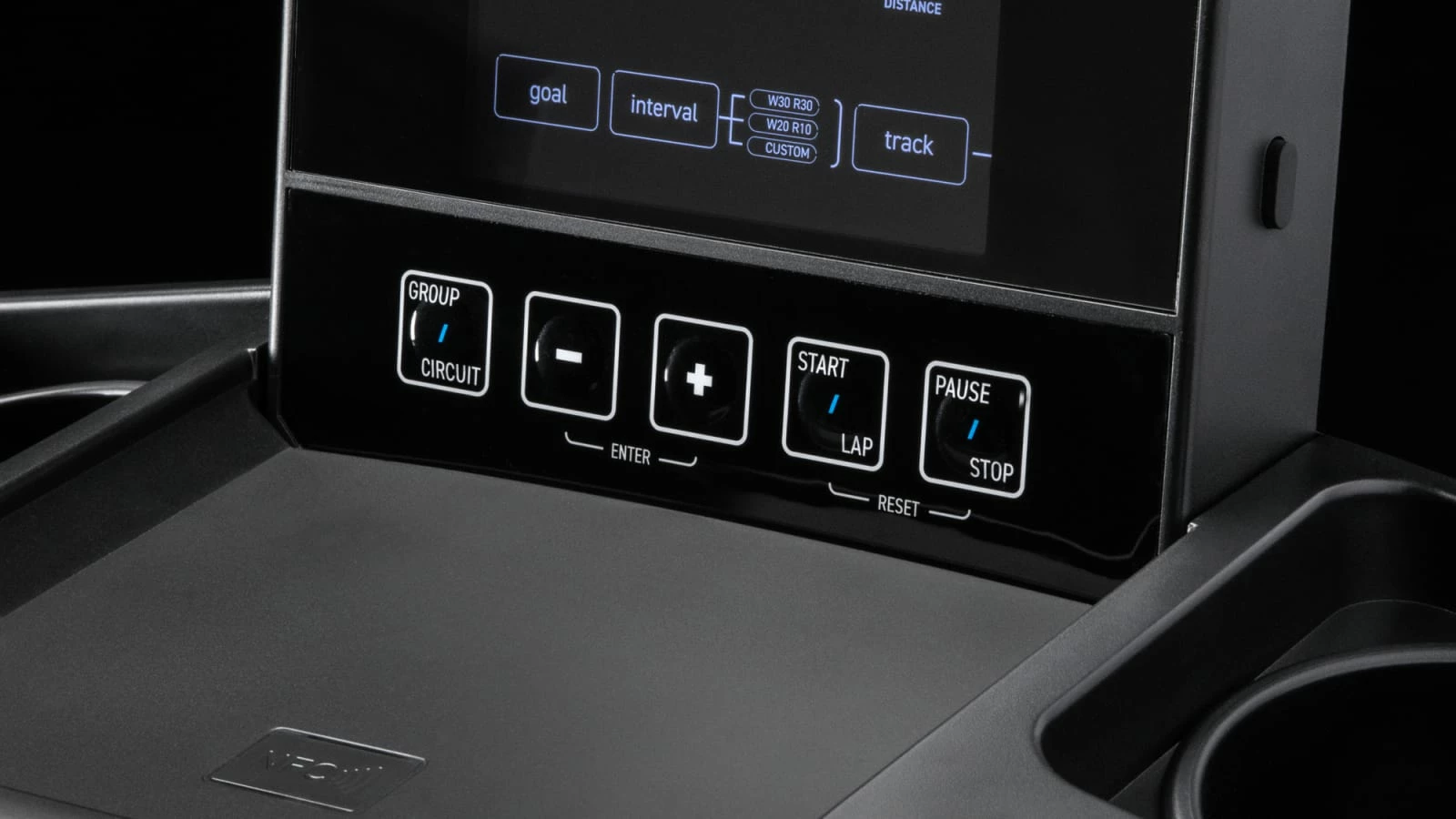 Woodway’s advanced, ergonomic design puts less stress on the joints, tendons, and muscle tissue, and the curved uprights and non-slip side covers reduce falls and provide a stable platform to step up or off of the treadmill. An included LCD display tracks a broad range of metrics: Speed (Current/Peak/Average); Time (Total/Pace); Calories (Total/Active/Mets/Watts), and even Heart Rate when paired via Bluetooth or ANT+. A convenient Group/Circuit mode also enables easy training among groups, with the ability to track and summarize the stats of up to four runners.