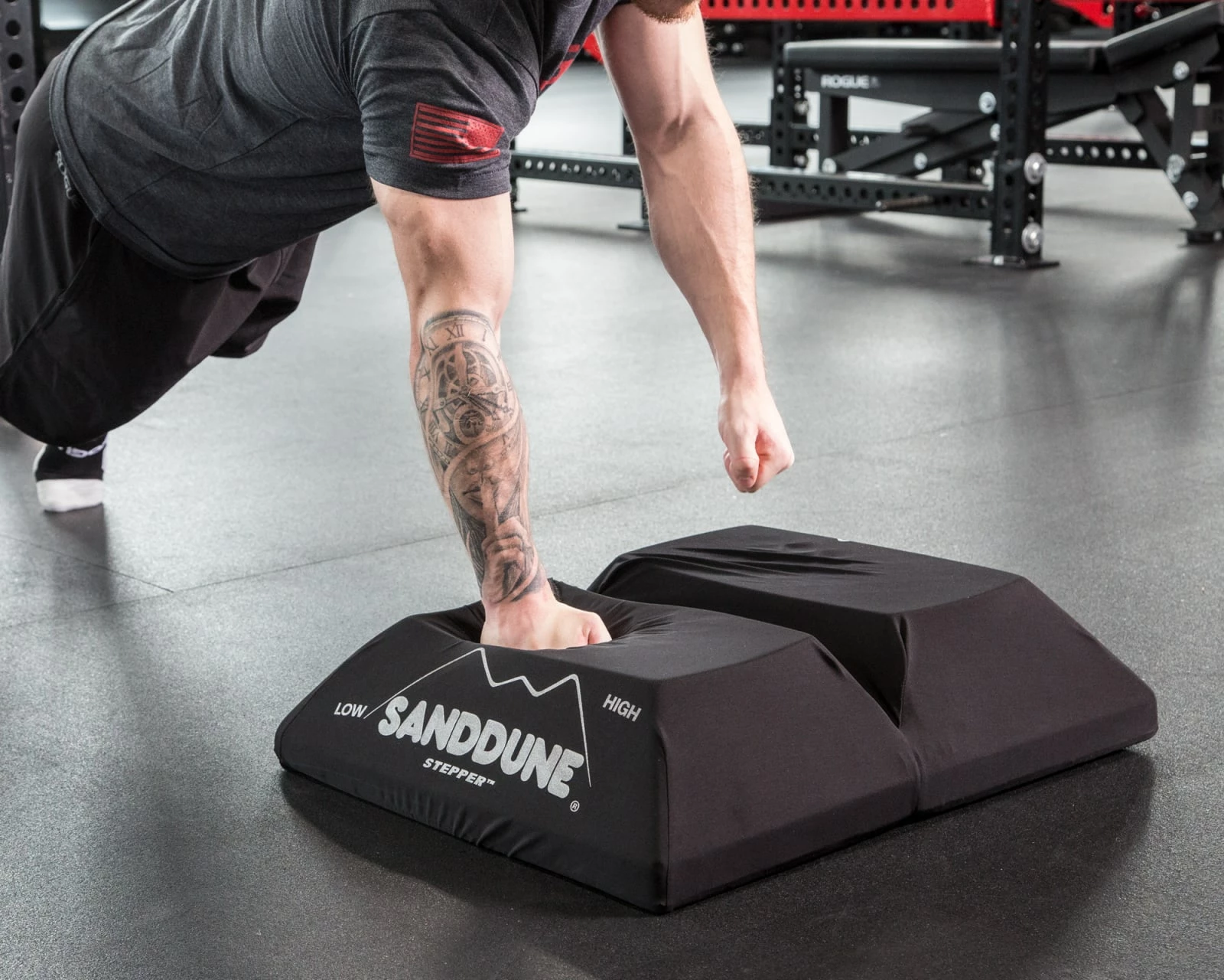 Made from a reciprocating polyurethane foam blend, the Sanddune Power Stepper is a unique balancing implement that recreates the feel and challenge of moving on thick sand, with an added, beneficial rebound effect. The design utilizes two independent platforms (one slightly higher than the other), enabling unilateral training and dynamic movements. This makes it ideally equipped as a low impact, rehabilitation tool for anyone recovering from an injury (especially foot, ankle, knee, hip, and shoulder), but also equally useful as a great pre-lift warm-up for weightlifters and athletes at the highest levels of competition.