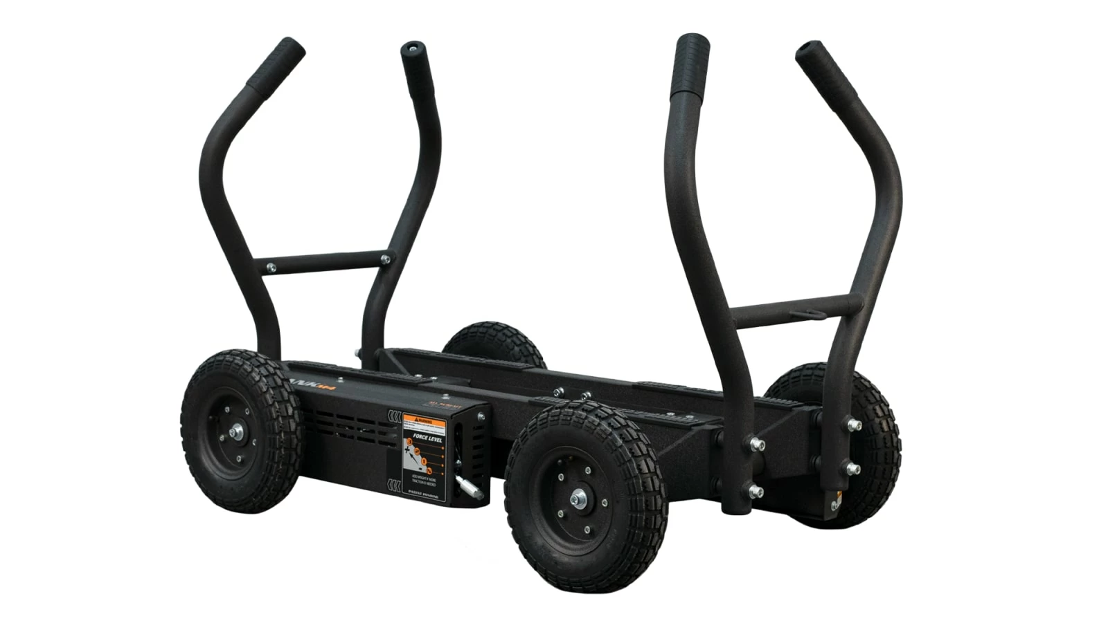 The TANK™ M4 from Torque Fitness is another variation on Torque’s game-changing push sled on wheels. Rather than relying on friction-based resistance like most weighted sleds on the market, the TANK™ operates more like a fan bike, with a magnetic + flywheel design that automatically increases resistance as the sled is pushed faster; with no need to stop and load or unload plates. Because the TANK’s steel frame sits on four oversized, all-surface tires, the sled can also be used indoor and outdoor, from turf to pavement, producing far less noise than friction sleds and no gouging! Its electrostatic paint finish also protects it effectively from the elements.