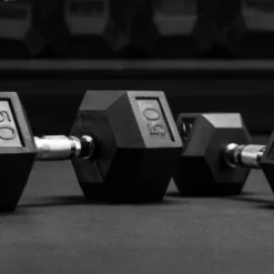 Rogue is now offering pairs of unbranded Rubber Hex Dumbbells while supplies last. Ranging from 2.5 LB up to 125 LB, each of these welded DBs has a weight tolerance of +/- 3% and includes embossed weight indications on two sides. The durable rubber-encased heads help reduce noise and prevent floor damage, while the chrome-plated steel handle is knurled for a firm but non-abrasive grip.
